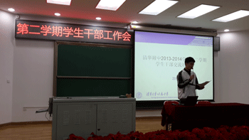 会上,校团委学生会主席团成员回顾了上一学年的工作情况,同学们随着精美的照片回忆了一二·九运动、汉字英雄、新年嘉年华等重大活动的精彩瞬间。随后,主席团成员布置了下一学期的工作内容,特别就学生节、百年校庆等重要活动进行了详细的说明。接着是经验分享,高13级的丛蓉和王宇轩两位同学与初中学生干部分享了自己作为学生干部的经验体会,进行了有效的互动。高1301班、高1303班、高1203班的主要学生干部在高中会场介绍了本班的特色班级文化。最后,德育处陈卫东、王敏老师分别在初、高中会场总结了值周、日常卫生检查等工作,并提出了新的要求。(档案室编辑)