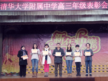 老师同学共同主持 副校长赵鸿雁(左1)颁发“年轻活力高三教师奖”