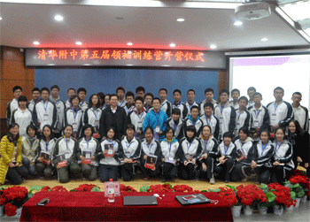 王殿军校长做主题演讲 王殿军校长(右)为新成员授营员证