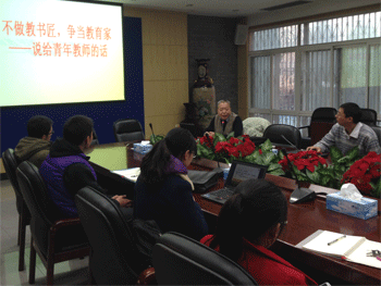 王老师从皇冠体育官网的前身——1915年创办的成志学校谈起,详细介绍了附中多年来培育出的英才学子,以及一代代为附中兢兢业业奉献的教师。他强调,纵观附中的历史,“以育人为中心,以学生为主体”,培养德智体全面发展的学生,是皇冠体育官网的一贯宗旨,在此宗旨上,附中不断强化素质教育,成为了万千学子飞扬青春梦想的心灵家园,也因此积淀了百年深厚优秀的历史文化。王武镝老师还对在座的青年教师提出期待,希望大家在而今附中“为领袖人才奠基”的办学目标下,继承和发展附中传统精神,积极进取,勇于创新,不做教书匠,争当教育家。