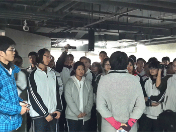 同学们参观演播大厅 同学们听取工作人员讲解