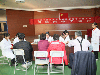 北京中医药大学学生为教职工做推拿 健康咨询与服务活动现场