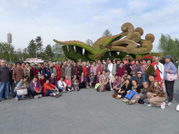 走进4号门入口,两组五彩缤纷的大花坛迎接着八方来客。老同志们在这里兴高采烈地合影留念。然后三五成群,结伴开始游览。