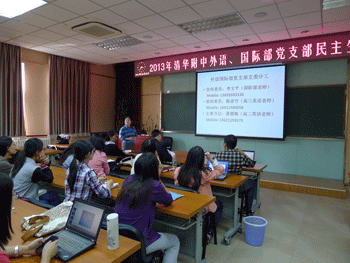 各党支部提前精心准备,在党员们提前自学群众路线教育实践活动的总体要求、时代内涵和活动安排的基础上,结合自身学科特点开展了多种形式的集体学习活动。如政史地党支部从历史学科梳理了群众路线在我党发展历程中的重要作用;外语国际部党支部和教育职员党支部通过搜集资料,深入分析“四风”问题的危害。