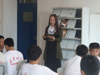 辛颖主任发言 同学在向李书霞老师宣读聘书