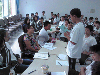 本次班会还对全班同学进行了导师分组,根据同学们预先的申请,将全班同学分为数学小组、语文小组、外语小组、物理小组、化学小组、生物小组六部分,每一部分由相应任课老师担任导师,同学们向每位导师发出了热情洋溢的聘书。汤丽老师,王文赞老师,罗雷生老师,李书霞老师,刘健老师以及班主任尹政君老师也纷纷表示:不但非常愿意成为同学们学业上的导师,更愿意成为对同学们心灵上的导师,在做人,处事和学业等方面给予同学们细心的指导。全班同学深受鼓舞和激励,同学们表示要以实际行动迎接挑战,在高二打一个漂亮仗!在接下来的自由讨论时间里,同学们围坐在导师的周围,认真地和导师进行小组沟通,会场气氛振奋,热烈。