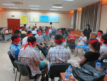 在随后两天的专业技能培训活动中,新教师们分组演示了微格教学和说课,并对教学技能展开积极的讨论,得到了指导教师的悉心指导。陈红老师对各位新教师的成果展示作了精彩的总结。校外拓展活动是本次教职工入职培训的新亮点,全体新教职员工驱车前往怀柔拓展基地,丰富的拓展训练帮助了新教师在互助中培养团队精神和拼搏意识,拉近了心理距离。16日上午,皇冠体育心理辅导中心主任陈明秋主持了教育技能培训活动。