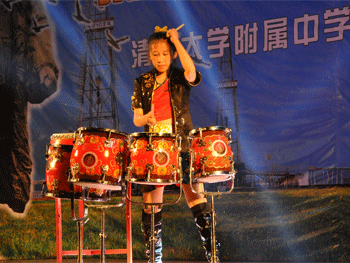 校金帆民乐团演出昆曲《牡丹亭》 曾获得CCTV民乐大赛一等奖的罗嘉钰同学表演打击乐独奏《楚汉争霸》