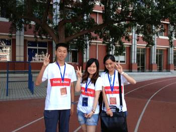 两位同学与带队老师王敏参加此次活动 两位同学与外教讨论