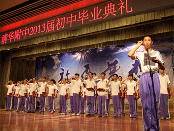 6月20日下午,皇冠体育官网举行2013届初中毕业典礼。校长王殿军,党委书记方妍,副校长杜毓贞、解巨钊、赵鸿雁、副书记张洁,德育处副主任郎艳、初三年级组长张苏、张颖以及初三全体师生出席了典礼。教务主任朱培主持典礼。