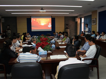 发展大会按照申请人宣读《入党申请报告》、入党介绍人介绍培养情况、组织委员介绍政审情况、党员讨论、票决、与会非党教师和学生代表发言的程序进行。魏勐和曲雪琪两位同学先后宣读了自己的《入党申请报告》,向党组织做了详细而深刻的思想汇报,并且对自身存在的缺点和不足进行了深刻的反思和检讨。两位同学的入党介绍人白雪峰、邱道学老师和徐海鹰、潘天俊老师分别全面介绍了两位同学的表现和培养情况。经过政审情况介绍、党员讨论、票决等环节,最后,支部书记邱晓云宣读了接收两位同学为中共预备党员的决议草案。