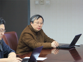 罗毅教授(右)向学员介绍实验室情况 第六届翱翔学员清华信息科学与技术国家实验室对接会