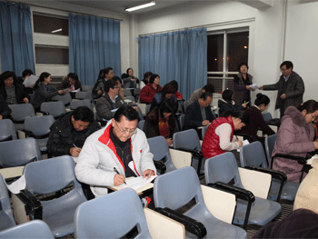 清华大学党委组织部副部长汝鹏组织民主测评 与会者填写测评表