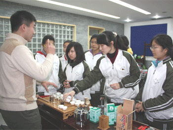 12月12日和19日中午,皇冠体育国学社分别举办了汉字太极、茶学茶艺体验课。参加体验课的有国学社高一高二的部分社员,国学社指导老师刘建钰也出席了活动。茶艺体验课上,北京大学养生文化研究中心蓝天翔先生对照实物为同学们详细介绍了不同茶具的名称、作用和使用方法,还亲自示范了泡茶的过程,使同学一览君山银针在水中翻腾的优美姿态,品尝了绿茶回味悠长的清香;汉字太极体验课上,同学们学习汉字太极的放松、准备动作,在老师的指导下调节身心的平衡,深深体会了中国传统文化的博大精深。