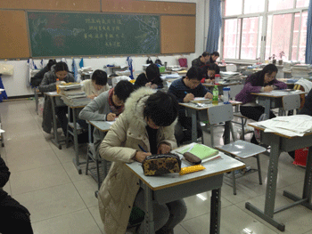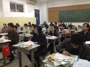 老师们集中填写问卷 老师们认真学习新的综合评比细则