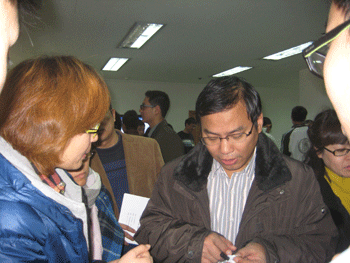 整个活动由中科院声学所的张莉老师主持。与会的领导和师生们先是观看了海试录像片以及深海声学拖体的模型,接着参与了“指向性扬声器”、“ 超声导盲仪”、“声表面波无线无源温度传感器系统”、“语言识别”、“声相仪”等互动演示。