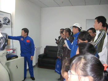 “蛟龙号”船员杨波为同学们讲解“蛟龙号”原理 俞家新主任(右)与中科院老师进行交流