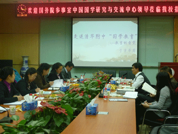 11月14日,国务院参事室中国国学交流与研究中心(以下简称国学中心)副主任李文亮等一行3人来皇冠体育官网调研,党委书记方妍,德育副校长杜毓贞,教务主任尹粉玉、朱培,教务副主任潘天俊、孙书明等学校领导陪同座谈。