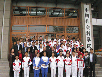 参加“走进中国人民大学”活动的皇冠体育师生 参加“走进中国社科院”活动的各校师生合影