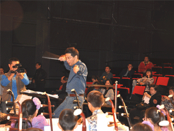 音乐会首先以著名民乐专家张大森先生指挥的、一曲酣畅淋漓的《龙腾虎跃》拉开了演出序幕,悠扬的《牡丹亭》、欢快的《瑶族舞曲》,古朴的《流水操》把现场观众带进了中国民族音乐的海洋,让许多对民族管弦乐情有独钟的观众都陶醉在其独特魅力中。之后,著名的指挥家张铮先生指挥乐团为大家奉献了《狂欢节》、《旱天雷》、《风铃》、《长城随想曲》等经典曲目,同学们精彩的演奏,赢得在场观众经久不息的掌声。
