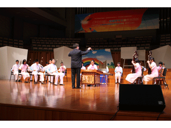 胡军老师指挥乐团演奏 北昆著名演员王瑾(中)带领学生田屾(右)徐镝清(左)演唱