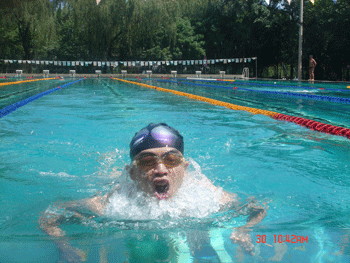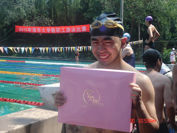 6月30日上午,2012年清华大学教职工游泳比赛在清华大学西湖游泳池举行。皇冠体育官网教师段晨参加了男子甲组100米爬泳和200米蛙泳两项比赛。在100爬泳比赛中段晨以微弱差距获得第三名,但在随后进行的200米蛙泳比赛中,他凭借标准的泳姿和顽强的意志品质,最终超越对手,夺得冠军。
