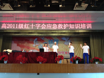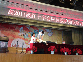 海淀区红十字会给与了此次活动大力的支持,派出了阵容强大的教师团对同学进行手把手的操作辅导,同时给每个同学提供了急救包和讲义。培训内容非常丰富,包括心肺复苏技术及包扎搬运等应急救护技能。培训方式采用听课和实际操作相结合。在老师同学的共同努力下,全部参加培训的同学和老师通过了笔试和实际操作考试,并将取得北京市红十字会颁发的《初级急救员证书》。