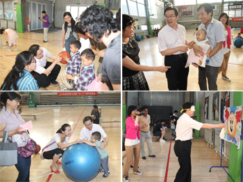 附中工会为不同年龄段的小朋友们精心准备了丰富多彩的游戏活动,比如:沙包掷准、足球射门、珍珠球、定点投篮、飞镖、20秒拍球、钓“鱼”、夹乒乓球,等等。小朋友们被现场有趣的活动深深吸引,他们兴致勃勃地做着每一项游戏,脸上洋溢着幸福欢乐的笑容,沉浸在童真的世界里,久久不肯离开。家长们陪伴着自己的孩子,享受天伦之乐,感受着身心的巨大幸福。现场气氛欢快热烈,轻松愉快,其乐融融。活动中,孩子们还领到了工会为他们准备的各种各样的节日礼物,有铅笔、橡皮、文具盒等学习用具,还有小汽车、变形金刚等智力玩具,小海豚、小企鹅、小鸭子等精巧饰物,还有饼干、棒棒糖、奶饮料等精美小食品。工会还为每位小朋友准备了一套精美的水壶作为节日礼物。