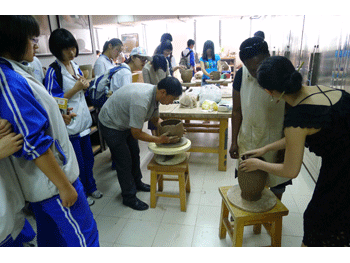 活动中,美院工业设计系刘恺威老师全程跟随、精心安排;两位正在美院设计专业就读的皇冠体育官网2009届美术班毕业生贠思瑶、李未然也全程陪同。