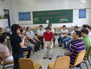活动中,班主任们亲身参与“戴高帽”等游戏活动,在游戏进行过程中不断获得肯定并肯定他人。在陈明秋老师的引导下,老师们探讨了在学生中间开展此项活动时所能够达成的效果和需要注意的方式方法。