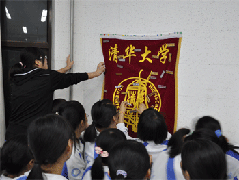 高三毕业生回忆自己在乐团的点点滴滴 毕业生们把自己乐团的胸牌别在乐团的团旗上