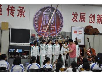 谭可儿、张怡然同学分别代表高三和初三毕业生发言,总结了自己过去3年的成长心得,并回顾了乐团的排练和演出情况。除了对学校和老师的感谢之外,更对师弟师妹提出了一些具体的要求,嘱咐他们要接好班,为传播祖国的传统文化贡献自己的一份力量。随后,09级团员们纷纷发言,表达了他们对学弟学妹的希望。在全体同学们热烈的掌声中和“加油!加油!”的呐喊声中,09级的同学们把自己的名牌别在了民乐团的团旗上,并把这段“金帆”的经历,深深地镌刻在了乐团的历史上,期间不少同学留下了热泪。