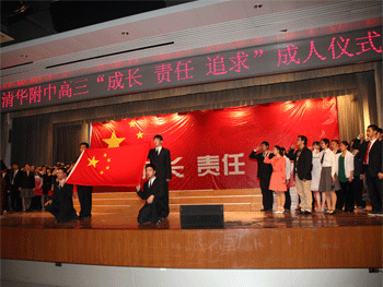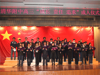 首先进行的是“迈入成人门”的活动,在成人门前,高三各班班主任为学生们颁发成人纪念册和家长信,并和学生及家长一一合影留念,学生们带着即将成人的喜悦和老师家长们的祝福迈入成人门。