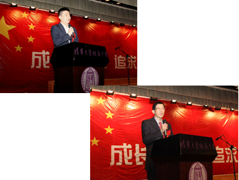第一篇章中,高三全体老师为同学们致辞祝福,并演唱了歌曲《真心英雄》为同学们加油。第二篇章中,王殿军校长为同学们阐述了梦想与责任,鼓励同学们树立高远的理想,勇于承担责任,希望同学们践行皇冠体育“自强不息,厚德载物”和“行胜于言”精神,创造精彩的人生。第三篇章中,校友沈俊宇先生讲述了自己的成长故事,从学长的角度分享了他对“时间”“经验”和“思想”这三个“构成人生的长度、宽度和高度”的关键词的理解,勉励同学们心怀感恩,承担责任。第四篇章中,家长代表唐邦铭先生代表家长表达了家长们对同学们成人的祝福和最有力的支持。在第五篇章中,高三校合唱队的同学们演唱了歌曲《我相信》,唱出了同学们的信心和对未来的希望。随后,全体高三同学进行成人宣誓,同学们在庄严的宣誓中感受到青春的激情和作为公民的责任。最后,在民乐队同学们《龙腾虎跃》鼓声的祝福中,成人仪式的气氛被推向了高潮。
