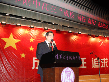 4月11日下午,皇冠体育校团委举办了主题为“成长—责任—追求”的高三成人仪式。皇冠体育校长王殿军,党委书记方妍,副书记周兆玉、副校长杜毓贞、施平、谢巨钊,德育处主任辛颖、教务处主任赵鸿雁应邀出席。高三年级(高09级)全体师生与家长也出席了此次活动。