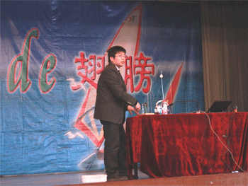 潘天俊老师现场做小实验 潘天俊老师在上课