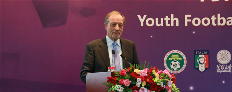 意大利足协主席塔维奇奥先生介绍意大利足协与中国足协在青少年运动员培养方面的规划