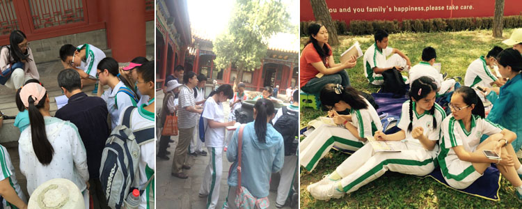 理政组由宣教部果主任亲自授课,她首先让孩子们领到地图之后开始自主参观,找到以下景点:内阁大堂、内阁诰敕房、太和门、乾清门、军机处、景运门,并初步了解其功能。固定时间在箭亭集合,席地而坐,开始学习和讨论。果主任结合他们所看到的景点,具体介绍这些议政场所的发展由来和具体的功能,并着重介绍了孩子们感兴趣的奏折问题,分享了自己收藏的书籍和一部分奏折的复印材料,供学生讨论使用。学生学习的气氛轻松活跃,在参观讨论的过程中,对于皇帝理政的场所、奏折使用的诸多问题都有了进一步理解。