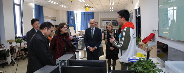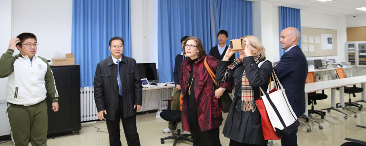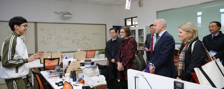 来宾们首先参观了高研实验室,观看了学生们的创意发明,各种能量转化为电能的装置、3D眼镜、智能床等学生们的创意设计发明都让PEA校长及随行领导连连称赞。