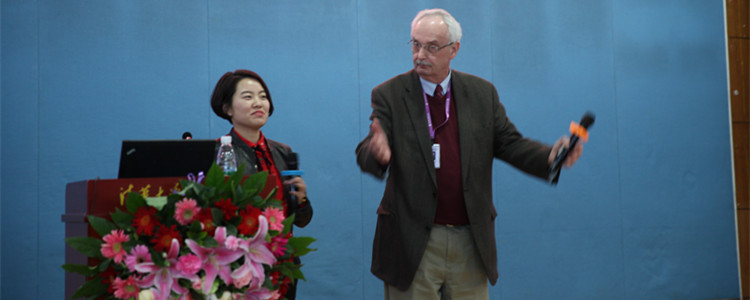 John Christopher Hansen与张文颖校长在研讨会上发表演讲