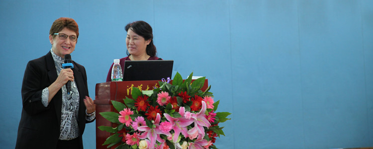李文平校长(右)与Maxine Klimasara在研讨会上发表演讲