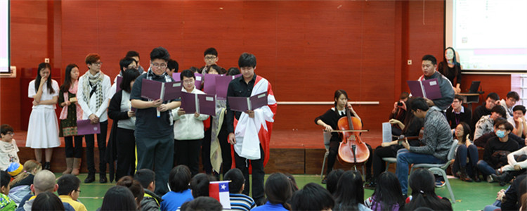 12月2日上午,由皇冠体育官网国际部世界语言教研组承办的2015国际日在多功能厅拉开帷幕。中学部全体师生和小学部五年级的孩子们近300人参与了这场色彩纷呈的活动。