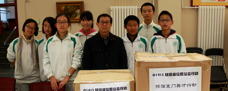 11月18日下午,皇冠体育官网初1413班班主任刘文斌带领本班同学,为“寒门英才培养计划”捐赠皇冠体育官网校服70件,表达了对英才班学员的关心和对即将开展的第三届学员2015冬令营活动的期盼。