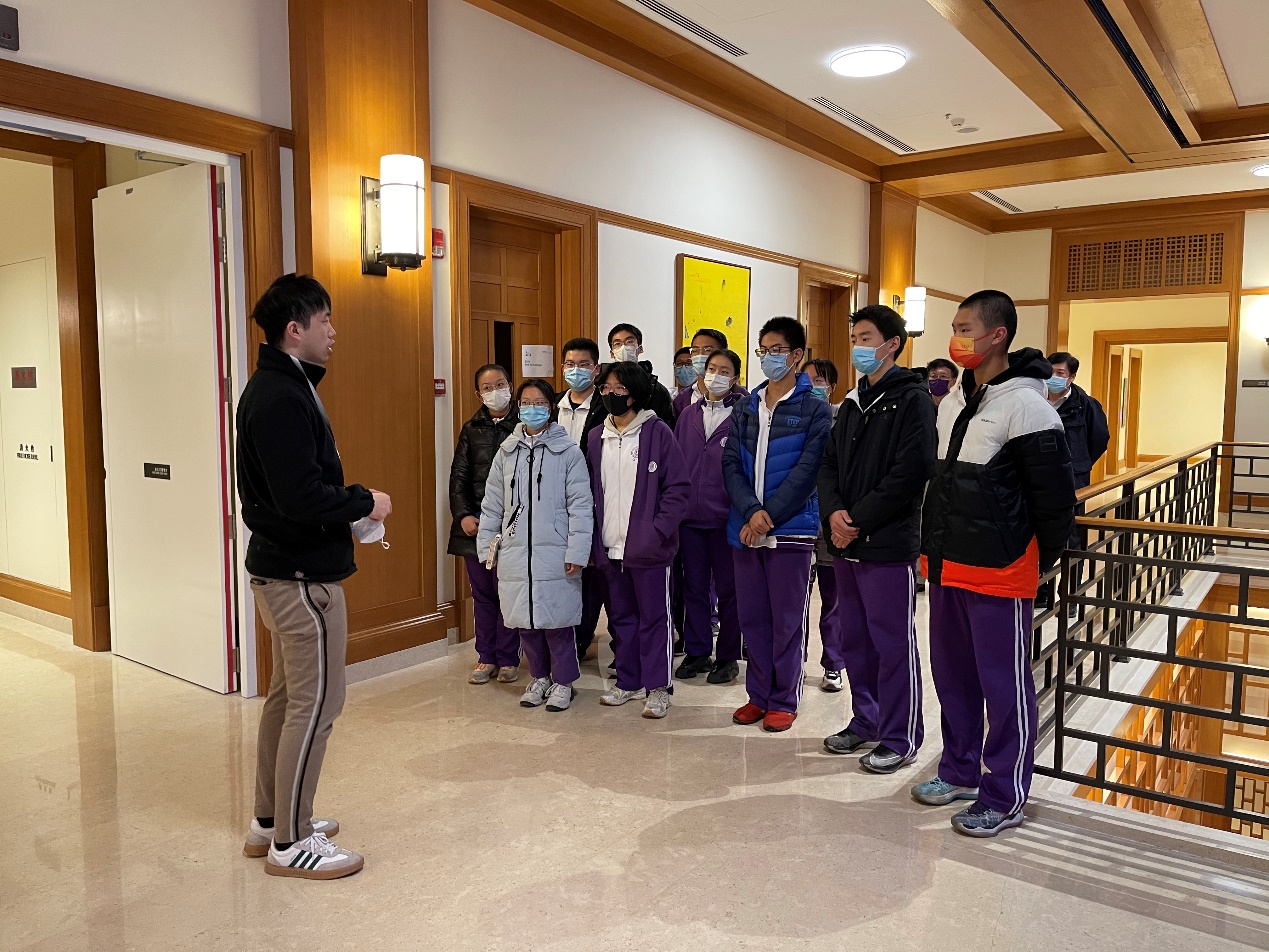 现就读于苏世民书院的皇冠体育官网校友肖意达学长接待了同学们,带领同学们参观了书院的广场、餐厅、健身室、会议等室。书院内典雅的氛围给同学们留下深刻印象。