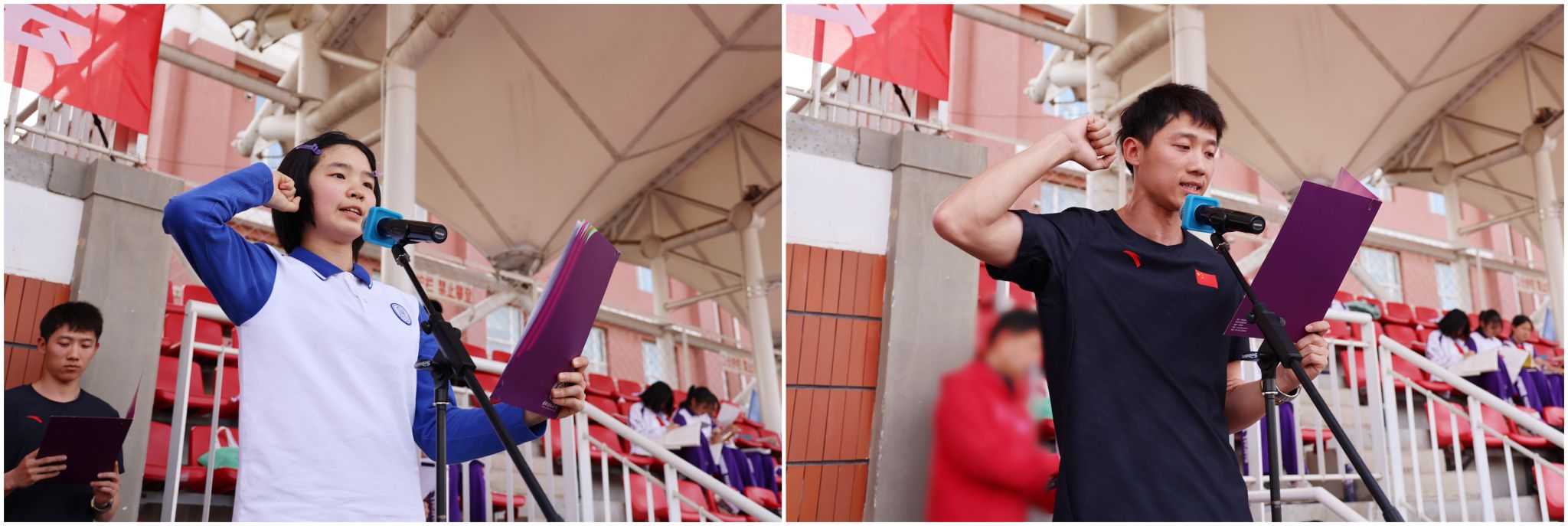 初2412班姜帛欣同学代表全体运动员宣誓、体育组侯珏文老师代表裁判员宣誓