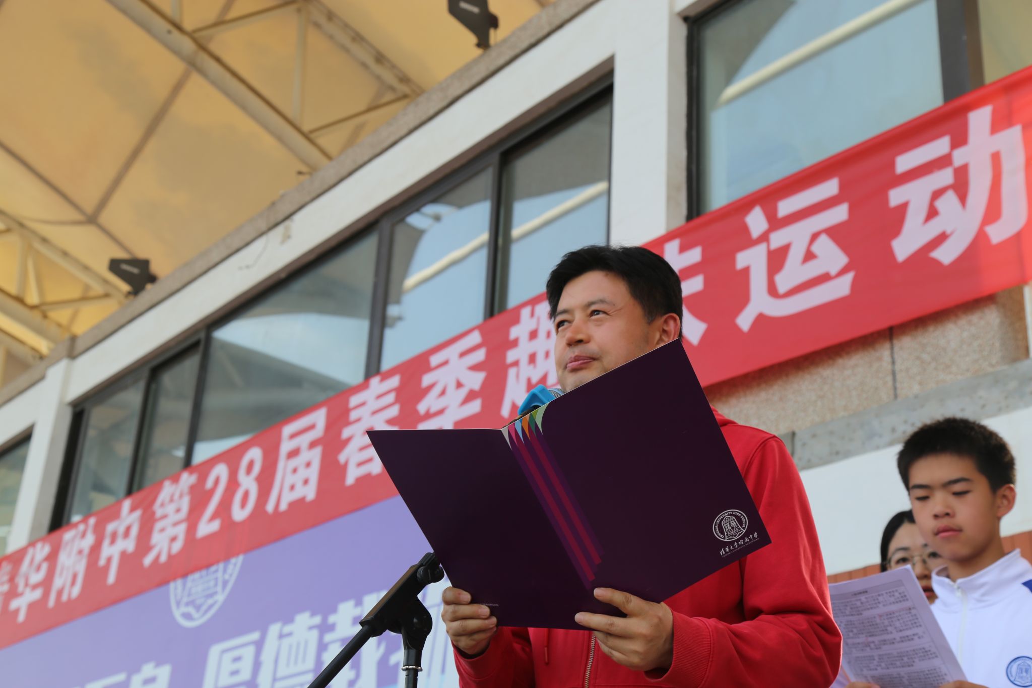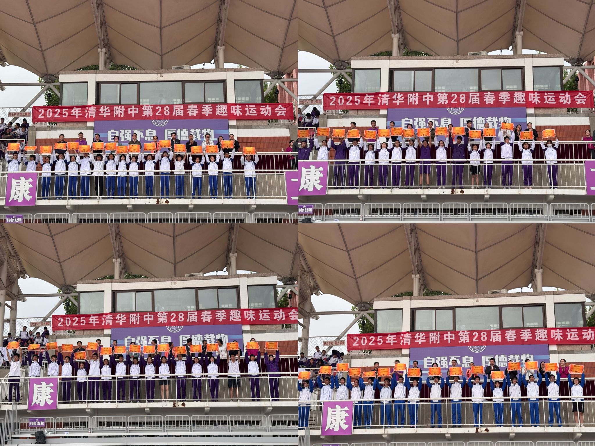 4月29日,暖阳灿烂,金光灼灼,皇冠体育第二十八届春季趣味运动会在学校操场举行。清华大学体育部副主任胡凯,清华园街道副主任方仲奇,皇冠体育校长方妍、皇冠体育党委书记曹海翔以及皇冠体育的全体校领导出席开幕式,初一、初二、高一、高二4个学部的全体师生共同参与。开幕式由教学管理与研究中心主任张彪主持。