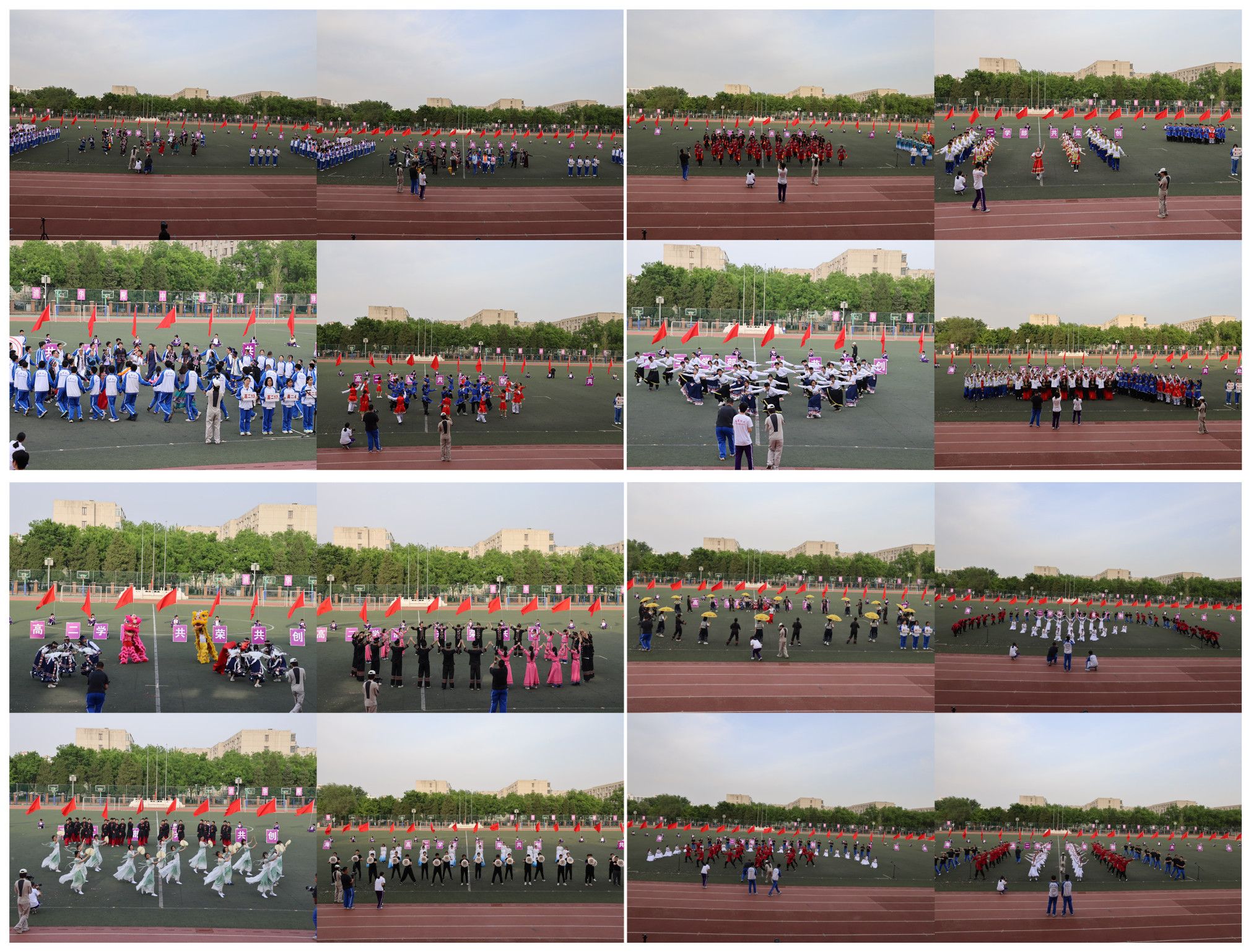 高二学部围绕“共荣共创”主题,在运动会入场式上奉献了一场极具感染力的民族团结盛宴。同学们以青春活力、饱满热情的表演,生动诠释了各民族共荣共创的美好愿景,彰显了民族团结的强大力量,展现出新时代青年对民族文化的尊重与传承,以及携手共创美好未来的坚定信念。