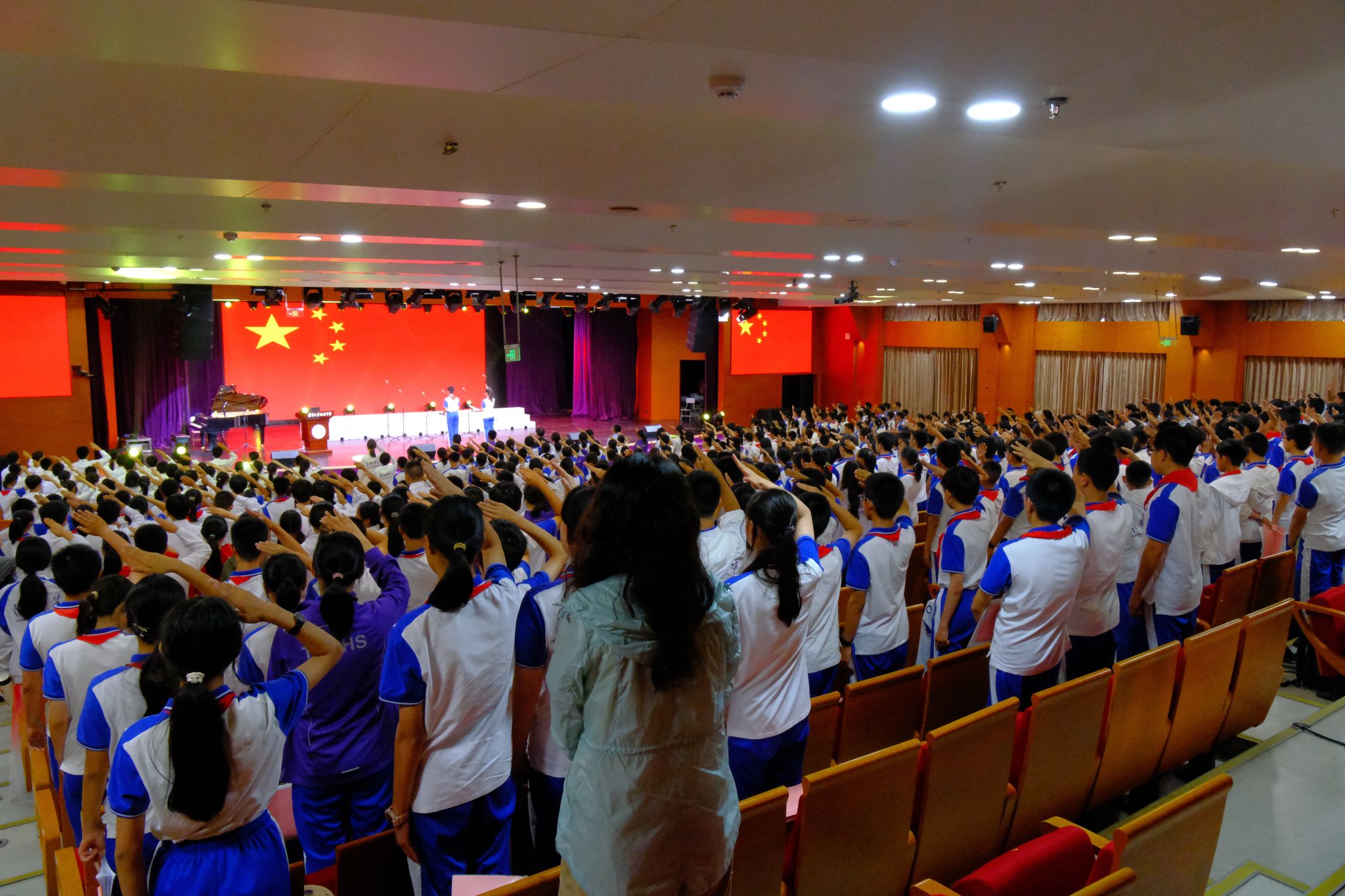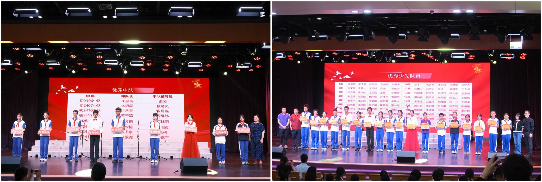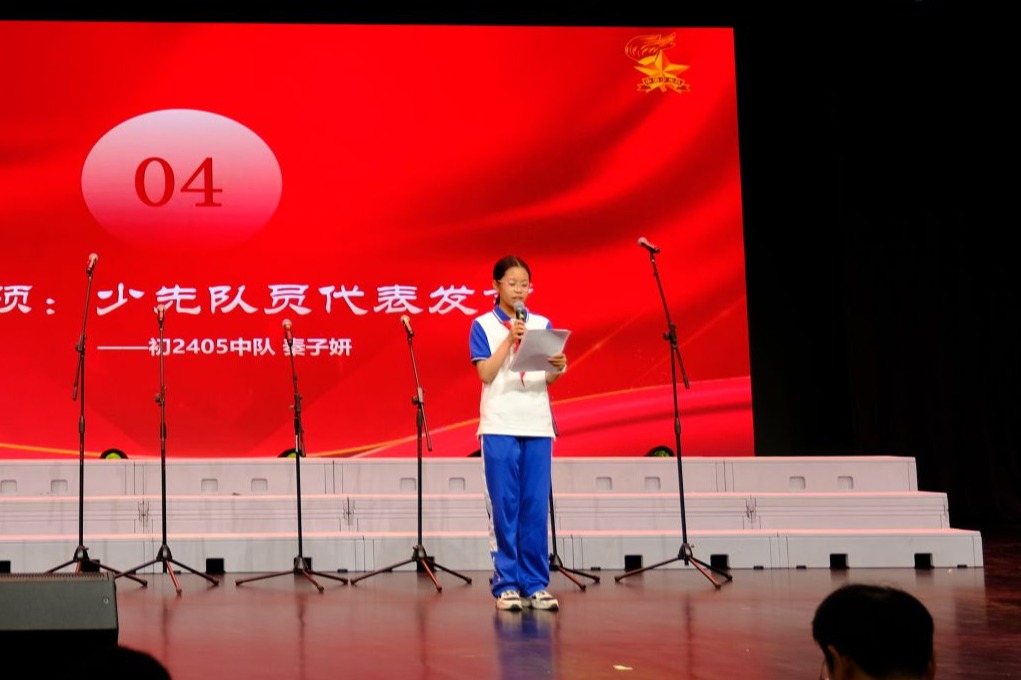 六月的阳光穿过树叶缝隙,将少年胸前的红领巾映照得格外鲜亮,也照亮了礼堂里一张张青春洋溢的面庞。在这个特殊的日子里,学生发展中心副主任李冰清,初24学部主任向东佳、副主任曹佩,音乐教师胡军、王金锋,与学部师生齐聚一堂,用庄严的表彰与深情的歌声,共同庆祝属于青少年的节日,更郑重宣告着新时代少年对学校百又十年精神血脉的自觉承续。