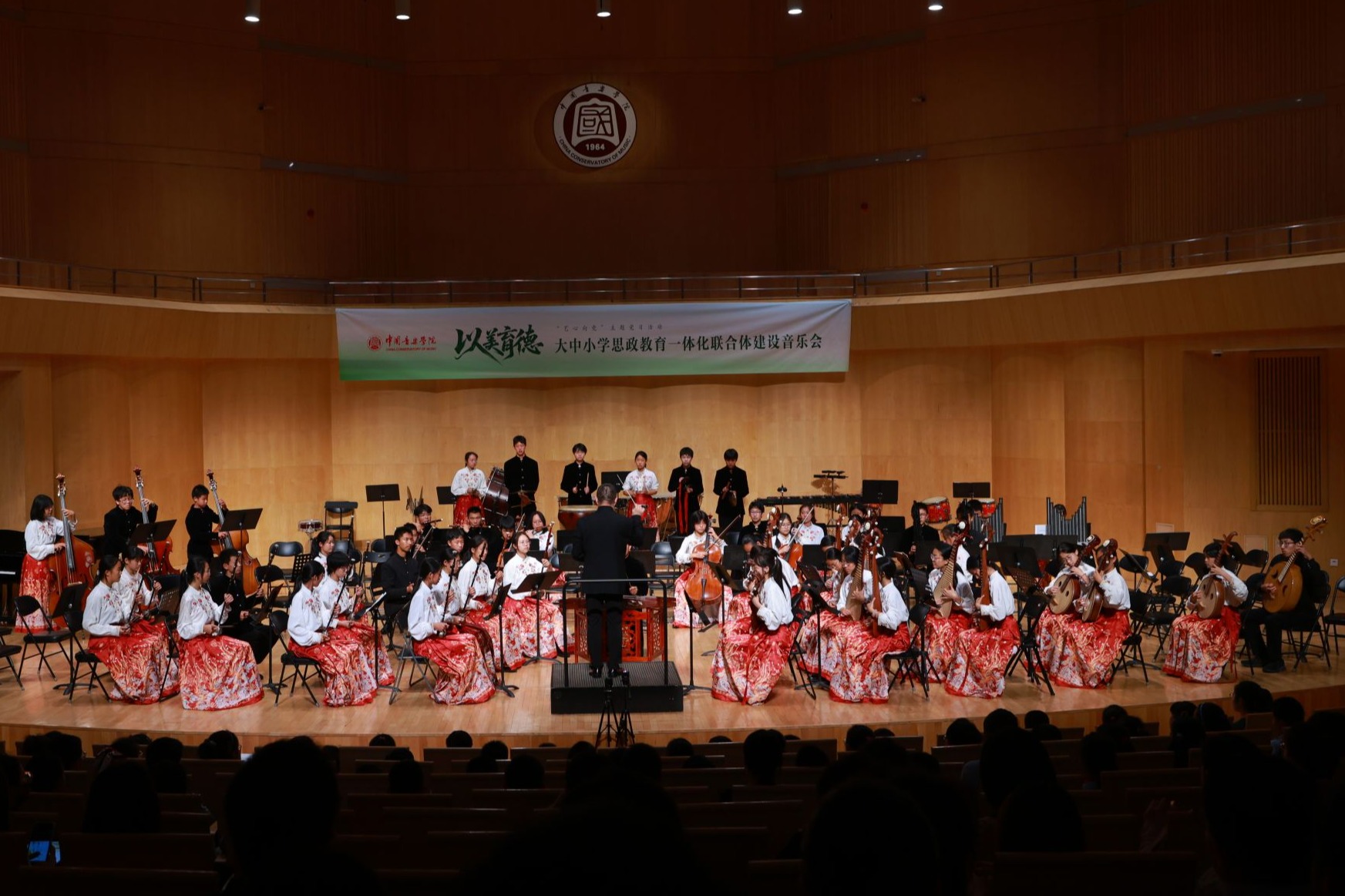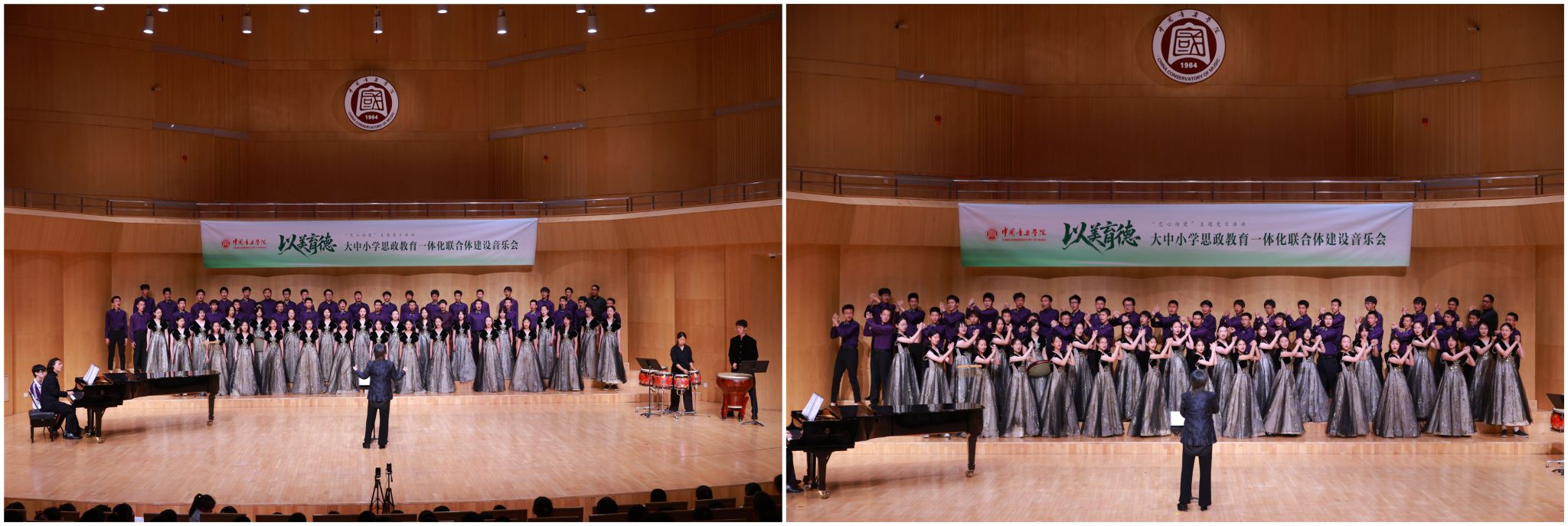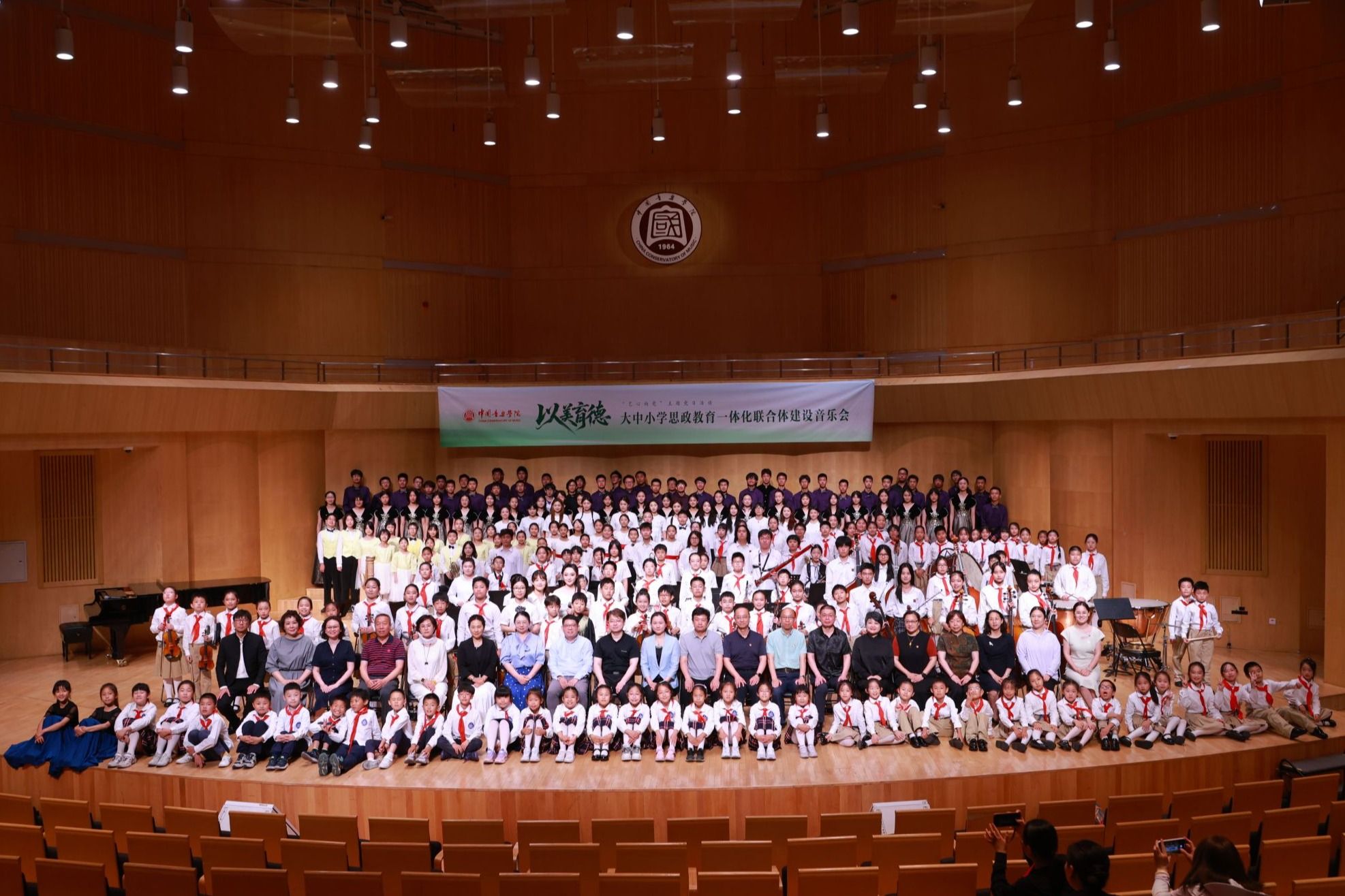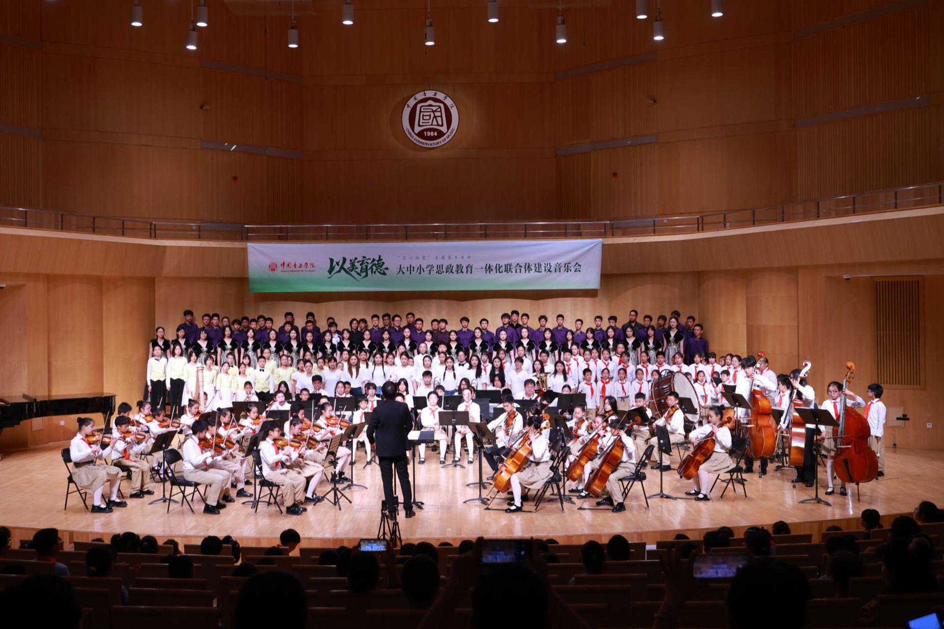 以旋律为桥,连接起大中小学的育人之路;用音乐为舟,滋润着你我心灵之田;以讲台为帆,扬起红色传承的永恒篇章。本次“以美育德”大中小学思政教育一体化联合体建设音乐会的成功举办,是中国音乐学院深入推进“大思政”工作创新的有效举措,不仅展现了大中小学生们的艺术才华与精神风貌,还充分彰显了思政与艺术深度融合的育人价值,更是“以美育德”理念在大中小学思政教育一体化联合体建设中结出的丰硕成果。