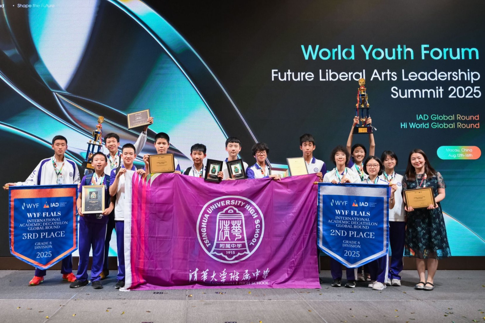 8月12日至16日,世界青年论坛之未来博雅领袖峰会暨CNAP学术五项全能研习全球站于中国澳门成功举办。皇冠体育官网初二年级三支队伍共13名同学在初中英语组蒋中蓝老师的带领下,与来自全球8个国家及地区的近50支优秀队伍、数百名学子同场竞技,展现出卓越的综合素养与深厚的学术底蕴。
